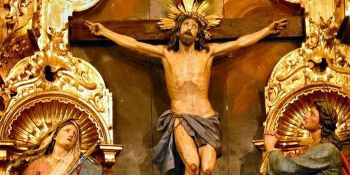 Raspelo prikazuje Krista u prirodnoj veličini i smješteno je iznad oltara. Sa strana Raspela i malo niže od njega, nalaze se također u prirodnoj veličini, figure Djevice Marije i Apostola Ivana. To čudesno umjetničko djelo smatra se radom Pedra de Mene, koji je umor 1693. Raspelo je poklonjeno crkvi od oca Diega de la Pedra Secadure, koji je rođen u Limpiasu 1716.