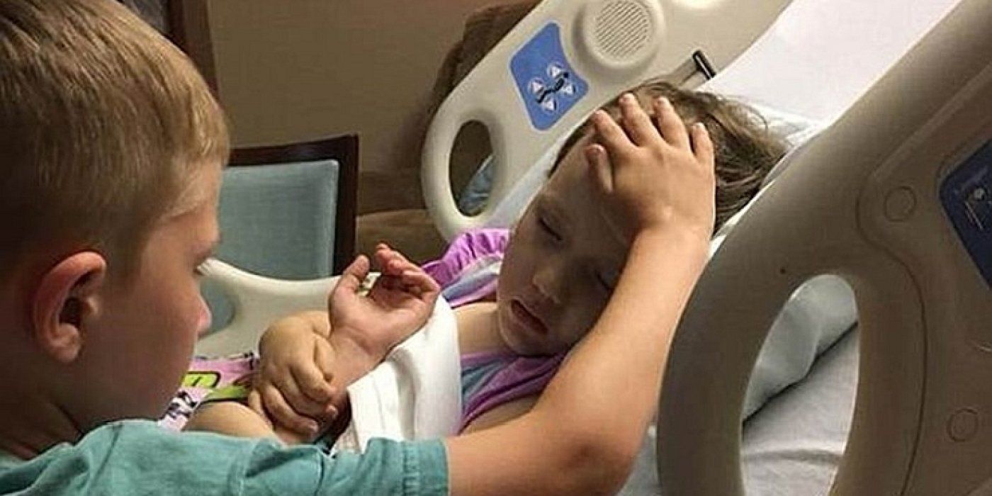 Na fotografiji koju je snimio Adalynnin otac, Jackson miluje čelo svoje sestre, dok ona drži njegovu drugu ruku.
