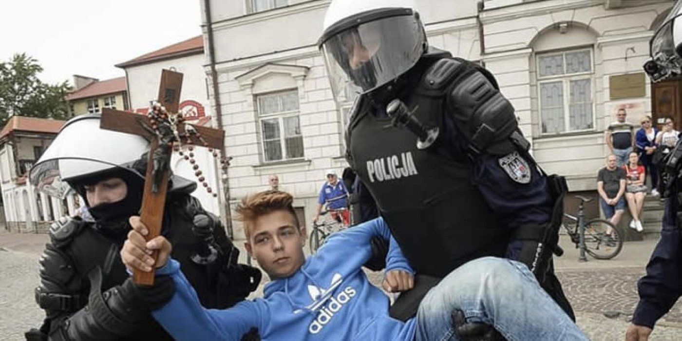Ali iz poljskih katoličkih medija saznajemo kako je hrabri poljski petnaestogodišnji mladić Jakub Baryła (na fotografiji) s križem u ruci stao pred gay paradu u Poljskoj.