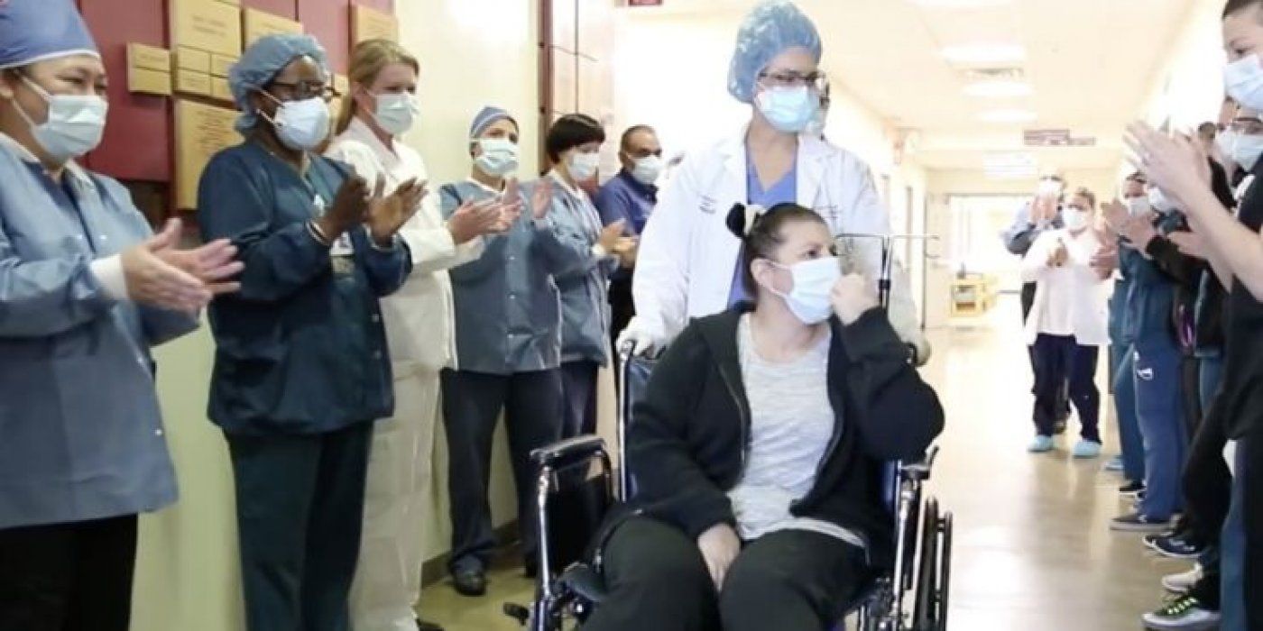 Na društvenim mrežama često se pojavljuju videi gdje se pacijentima plješće kad izlaze iz bolnica, a takve ovacije dobila je i Christina. Na ulazu bolnice, kao šećer na kraju, dočekali su je suprug i njezino petero djece. Čim je ugledala supruga, briznula je u plač. Ustala je iz kolica i zagrlila ga.