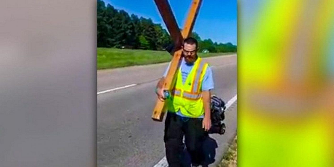 34-godišnjak je krenuo iz svog doma u Andrewsu te od 11.3. hoda sporednim cestama od grada do grada noseći križ koji je sam napravio.