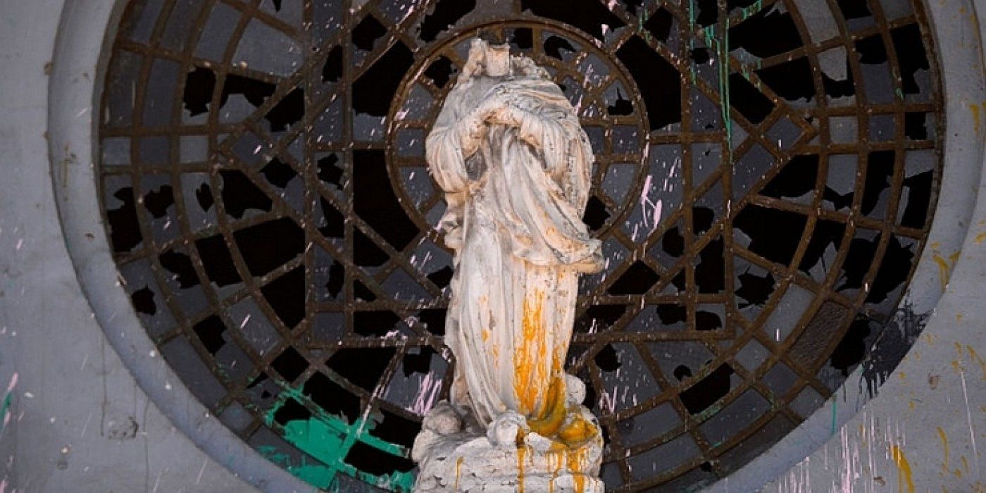 Napadači su iz staklenih kućišta izvadili statue Svetog Ekspedita i Svete Terezije Andske i uništili ih. Uništili su i nekoliko vitraja, razbili prozore, zidove išarali uvredljivim natpisima i pokušali silom ući u crkvu.