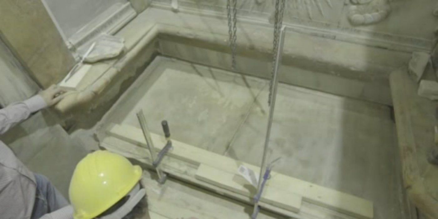 Prema predaji, Kristovo tijelo je bilo položeno na ploču isječenu iz pećine nakon što su ga Rimljani razapeli prije više od 2.000 godina. Isusov grob otvoren prvi put nakon skoro 500 godina