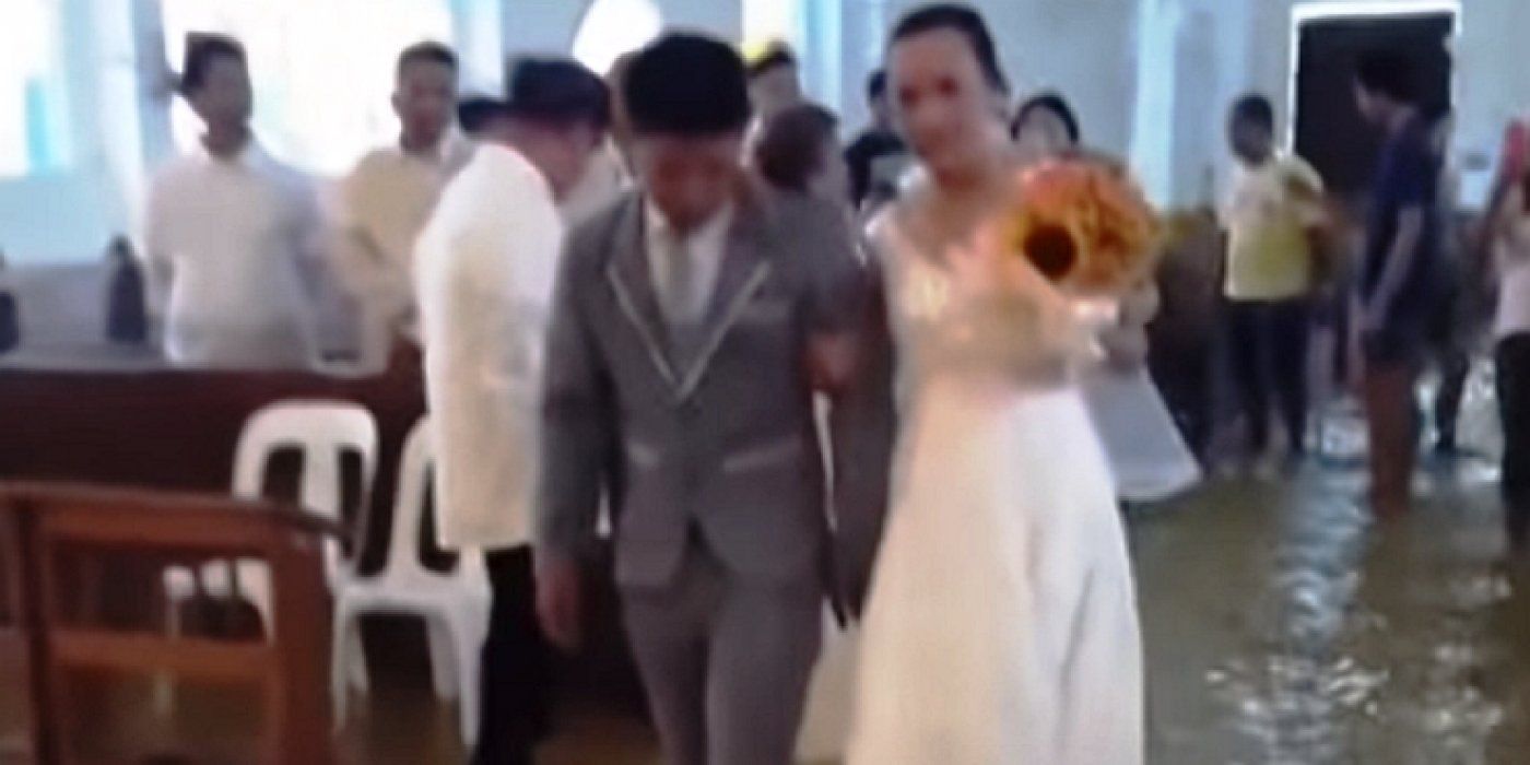 Par je izmijenio zavjete u subotu unatoč ekstremnim uvjetima - crkvu Santo Rosario (Svete Krunice), u općini Hagony, poplavile su jake kiše. Video koji je objavila mladenkina teta Tere Bañarez Bautista pokazuje ženu u bijeloj haljini koju roditelji prate do oltara gdje ju je mladoženja hrabro čekao. Na slikama se mogu vidjeti i gosti koji fino odjeveni, ali bosi, ne skidaju osmjeh s lica.