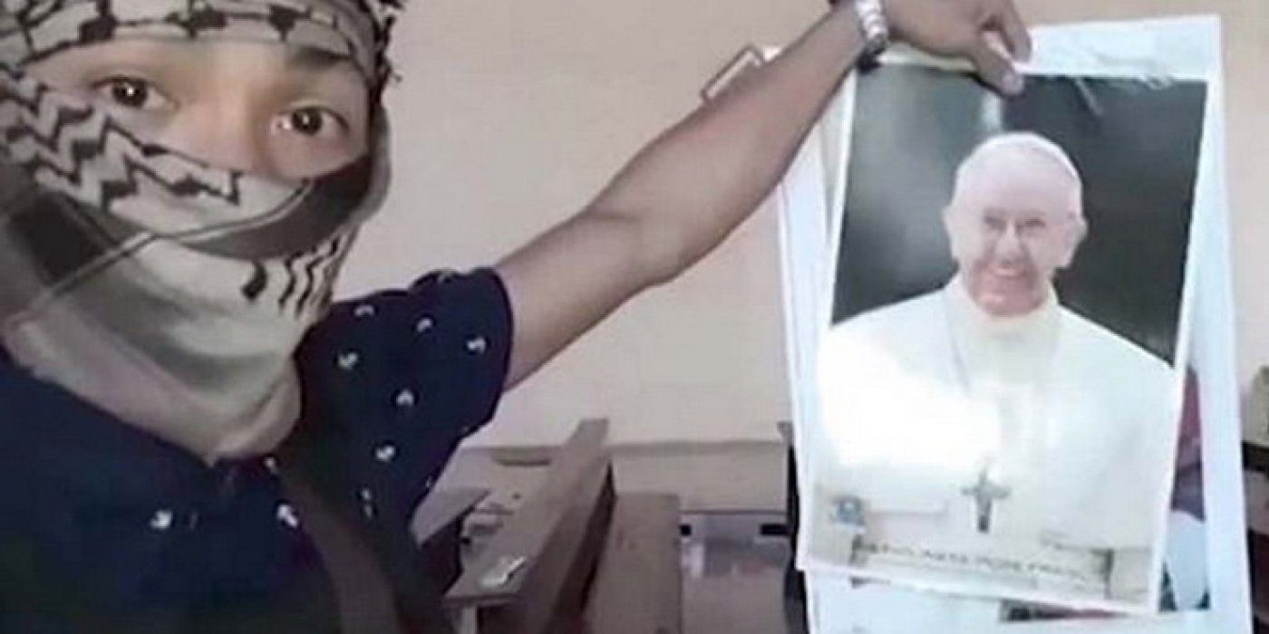 Na videu je prikazana grupa koja uništava raspelo i kip Djevice Marije, te ostavlja crkvu u plamenu. Jedan od džihadista na snimci drži fotografiju pape Franje i govori: „Učinit ćemo više od osvete. Doći ćemo u Rim, inshallah (Božja volja)“, tvrdi on dok pištoljem pokazuje na Papinu fotografiju.