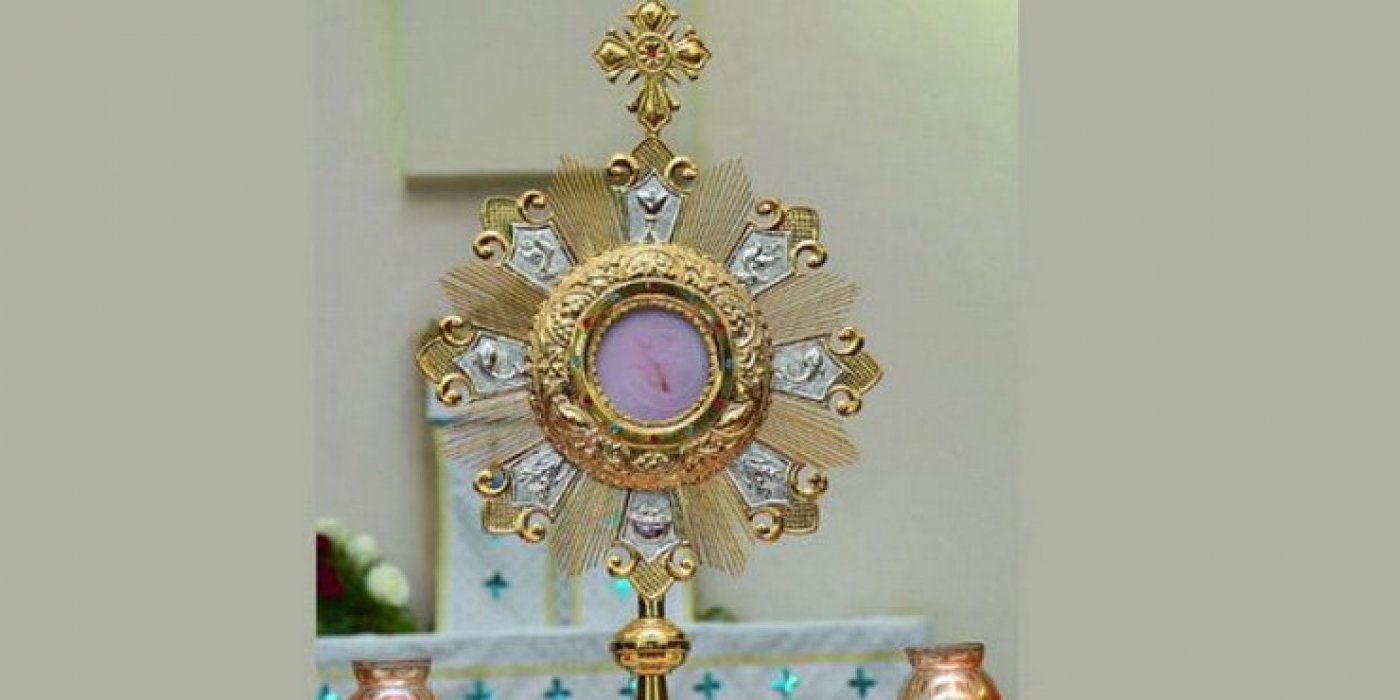 Grupa od nekih šest ljudi počela je moliti nakon što je hostija stavljena u pokaznicu i podignuta na oltar.Nakon deset minuta, jedan iz te grupe molitelja primjetio je crvenu mrlju na hostiji.