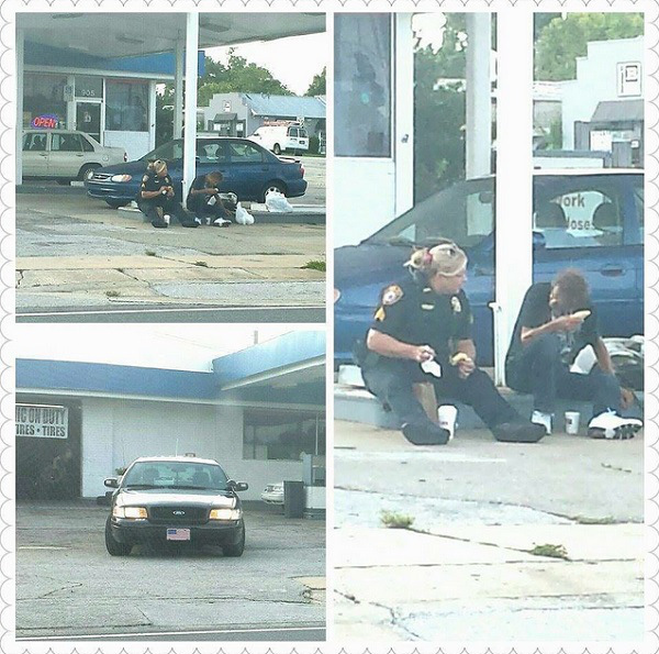 Slučajna prolaznica uočila ju je kako uz rub ceste razgovara i dijeli doručak s beskućnikom. Fotografirala ju je, a potom snimke objavila na instagram stranicama njezine policijske postaje. Floridska policajka i beskućnik postali su internetske zvijezde.