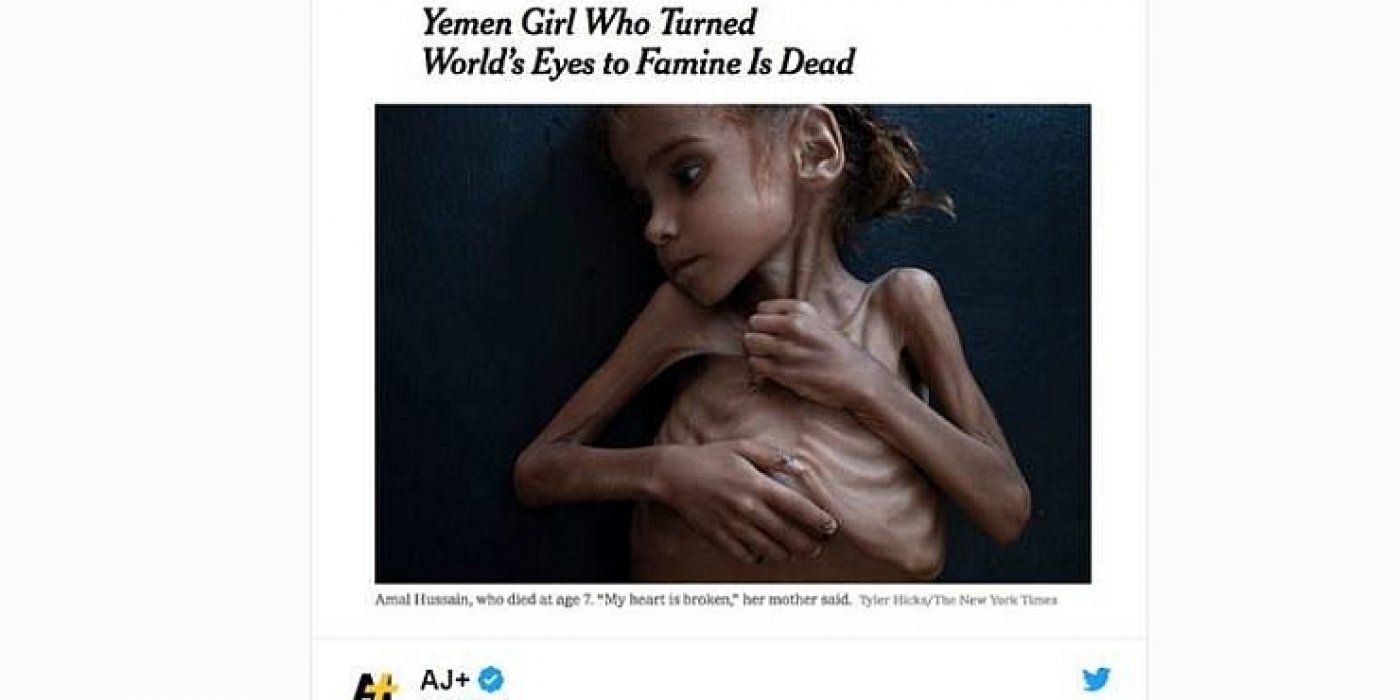 Amal Hussain, sedmogodišnja djevojčica čija je fotografija u New York Timesu prošle sedmice privukla pažnju svijeta prema hiljadama djece koja pate od užasnih posljedica jemenskog rata, preminula je, objavio je ovaj list.