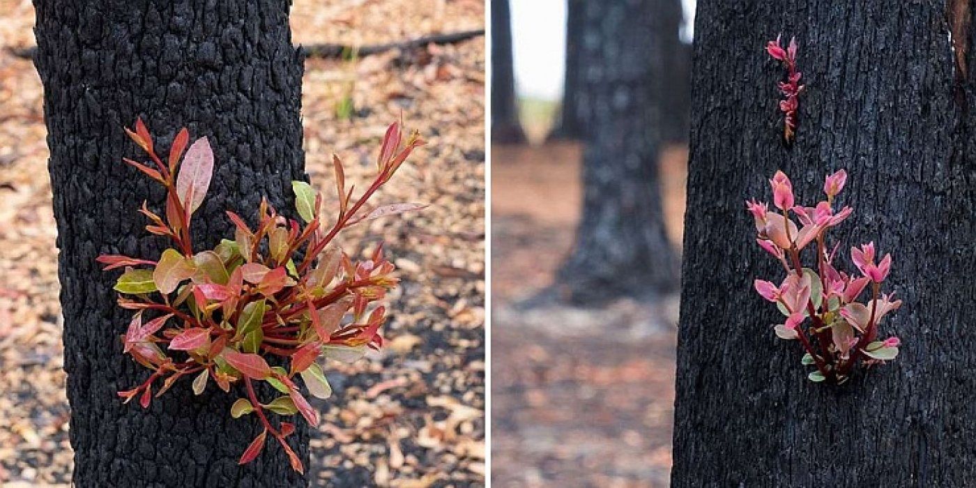 "Čak i bez ikakve kiše, život izvire kroz izgorjelu koru iz samog srca stabla i životni ciklus počinje iznova."