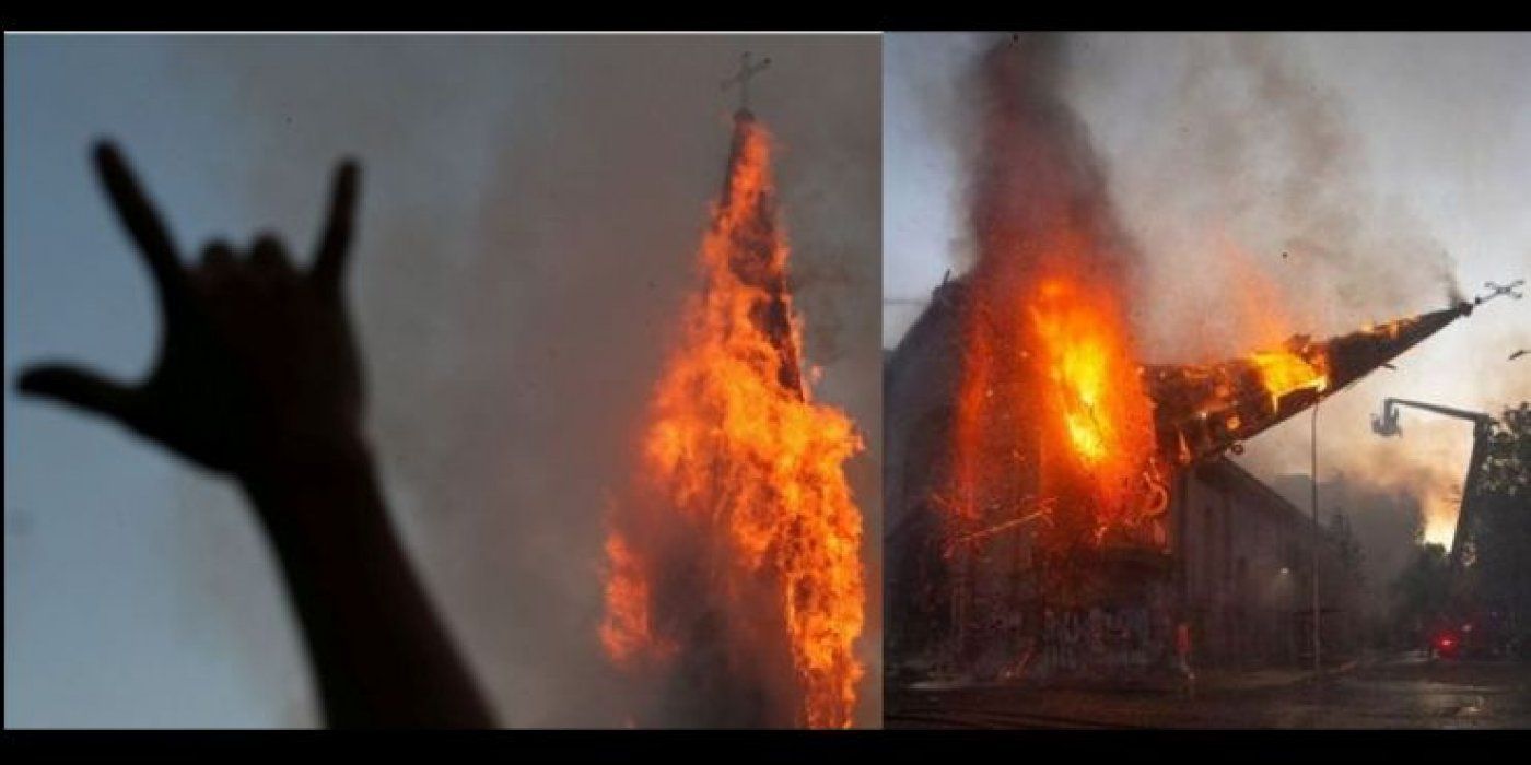 Fotografije objavljene na društvenim mrežama pokazuju kako se ruši toranj Parroquia de la Asuncion, jedna od najstarijih crkvi u Santiago de Chileu. Druge pokazuju Iglesiu de San Francisco de Borja, koju policija obično koristi za ceremonije, zahvaćenu plamenom, izvijestila je HINA.