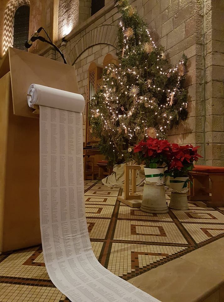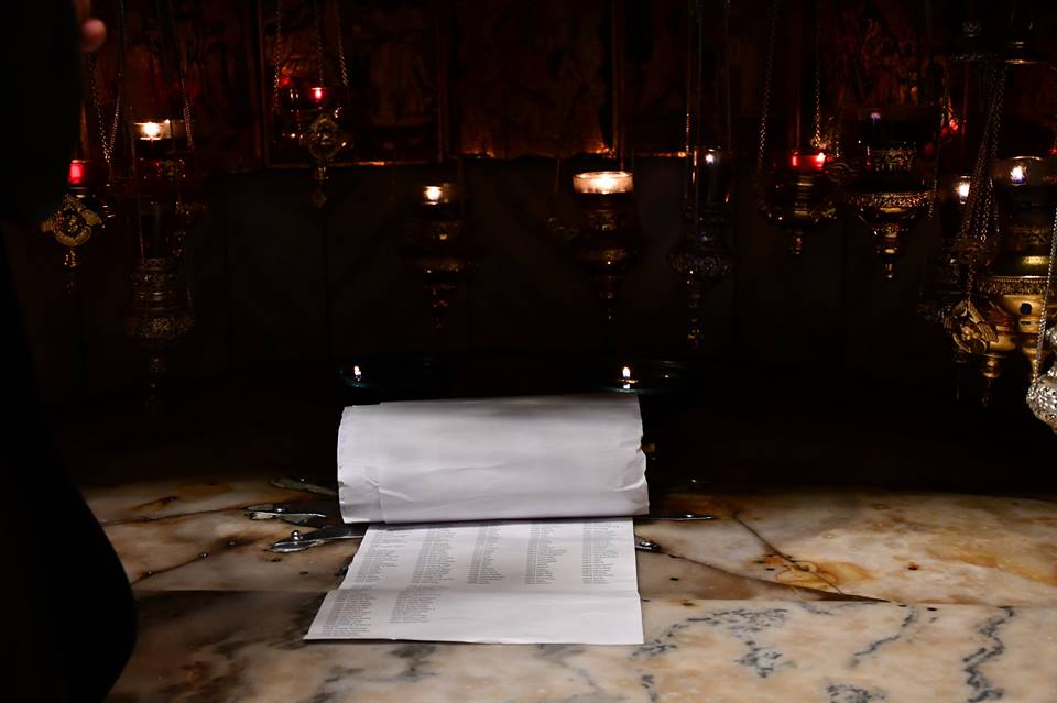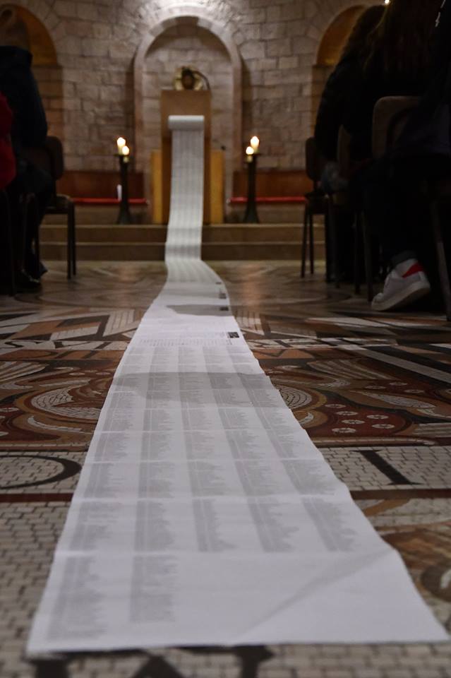 Preko portala www.dormitio.net/weihnachtsaktion moglo se je do utorka, 19. prosinca prijaviti imenom i prezimenom i vaše je ime u Božićnoj noći bilo položeno na srebrnu zvijezdu koja se nalazi na mjestu Isusova rođenja u istoimenoj crkvi u Betlehemu. Prijava i sudjelovanje je bilo besplatno i bez ikakvih je obaveza, no tko je to želio mogao je uplatiti dobrovoljni prilog za ovu opatiju i socijalne projekte u Svetoj Zemlji. Ovogodišnja lista s imenima bila je dugačka preko 50 metara i teška preko pet kilograma, a bilo je prijavljeno 70.518 imena, a prikupljeno je 131.683 eura milodara. Njemački benediktinci nakon polnoćke pješice su se uputiti kao nekoć pastiri u Betlehem, zajedno s ostalim vjernicima, gdje su na mjestu Isusova rođenja položili listu s imenima te se pomolili za sve njih. Fotogaleriju i video pogledajte u nastavku: