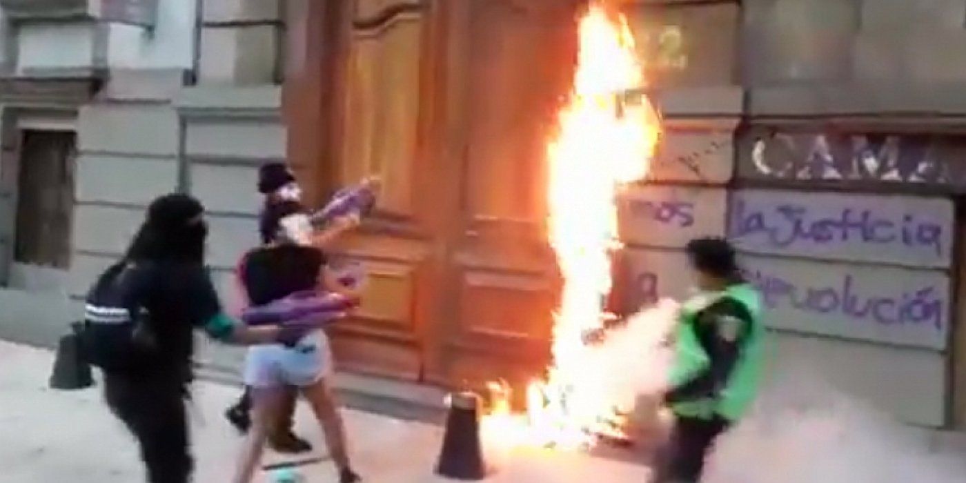 Kad su feministice zapalile vatru na ulaznim vratima katedrale, vatrogasci su uspjeli ugasiti plamen i spriječiti njegovo širenje.