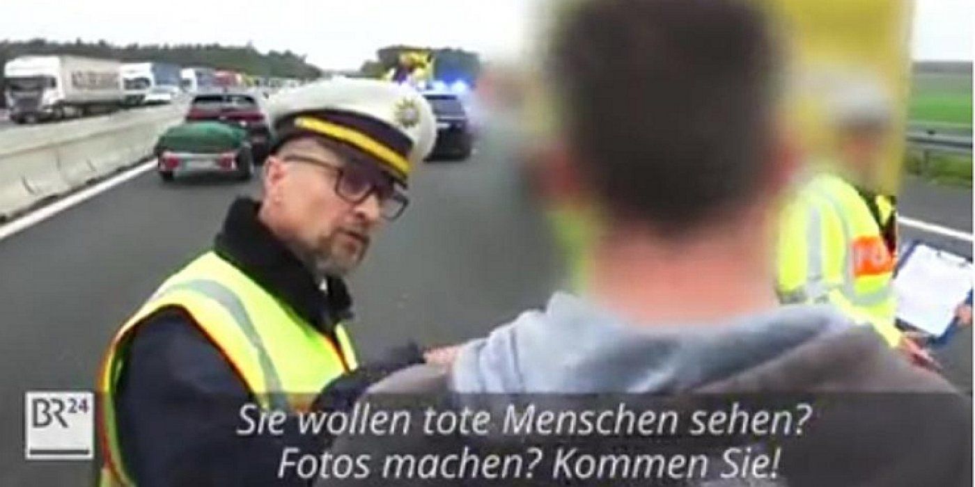 Njemački policajac je pokazivao vozačima mjesto teške prometne nesreće kako bi im dao do znanja da ne smiju snimati i da to nije igra već stvarnost.