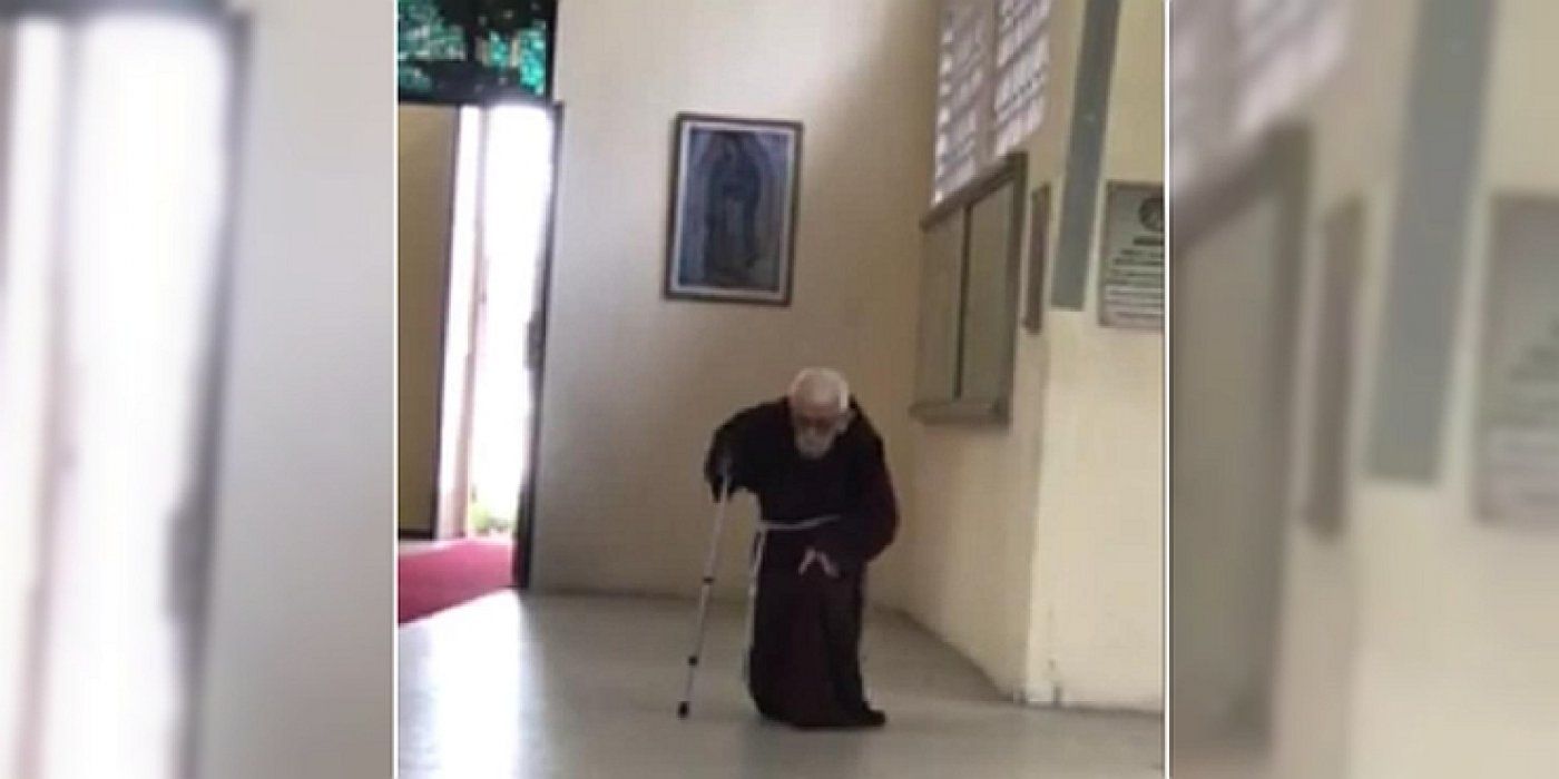 To je svakodnevna gesta, no vidjeti kako ju čini sićušan i pogrbljen, gotovo 99-godišnji kapucin (rođendan mu je 10. rujna), pridržavajući se štapom, šalje bitnu poruku.