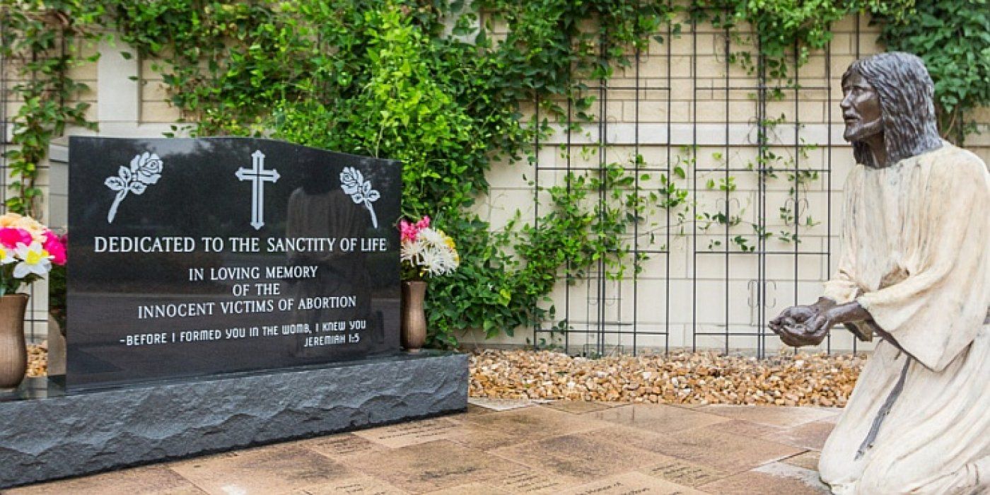 Na nadgrobnoj ploči pred kojom je skulptura klečućeg Isusa s abortiranom bebom u rukama, urezan je biblijski stih proroka Jeremije "Prije nego što te oblikovah u majčinoj utrobi, ja te znadoh". Ova dirljiva Božja Riječ iz Svetog pisma govori nam o tom djetetu i svoj djeci svijeta koja u utrobama svojih majki upozoravaju svijet na opasnost odabira zla nad dobrim! Prostor ispred spomenika koji podsjeća na strašnu propagandu kulture smrti, popločan je dirljivim porukama koje staju u obranu onih koji ne mogu dignuti svoj glas.
