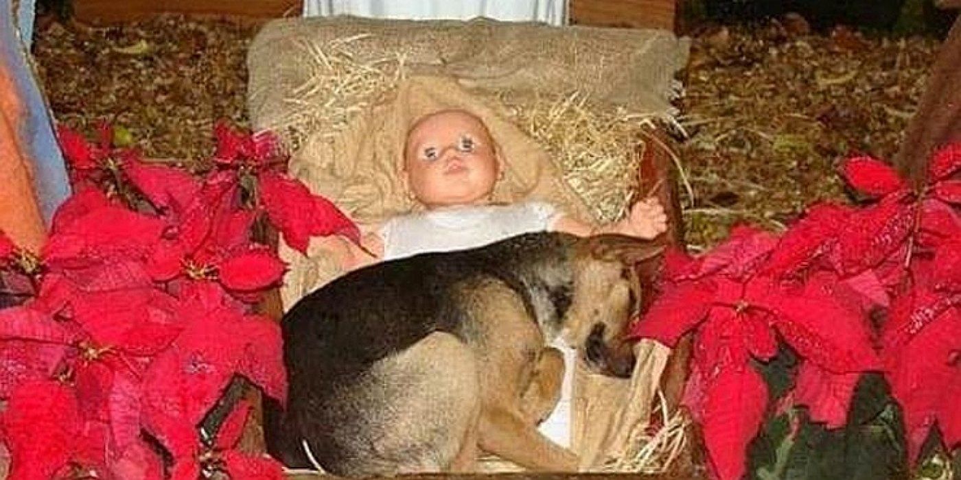 Pored novorođenog Isusa, napušteno štene njemačkog ovčara pronašlo je toplinu i utočište u jaslicama.